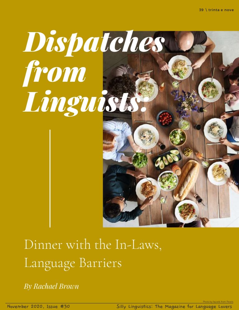 Dispatches from Linguists: Dinner with the In-Laws, Language Barriers February 29, 2024 This month the Dispatch is from Rachael Brown, who narrates a humorous tale of learning